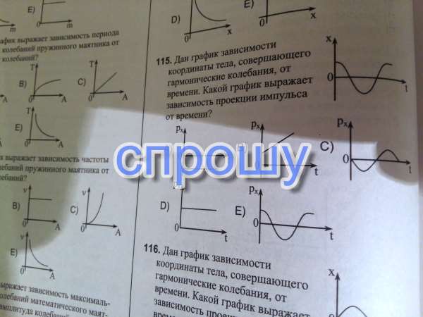Из вида графика колебаний следует, что они осуществляются по закону x(t)=Xm*cos(ω*t). Импульс тела P=m*v=m*x(t)=-m*ω*Xm*sin(ω*t). А этой формуле соответствует только рис. С. Ответ: на рис.С.