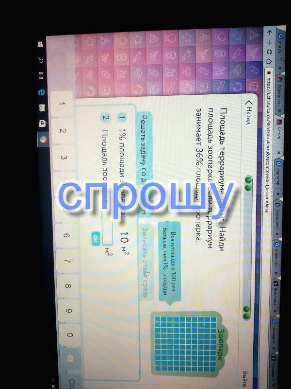 Теперь проверим 36 переведем в десятичную дробь получим 36/100 и эта величина составляет от всего зоопарка т.е. от 1000м^2.
