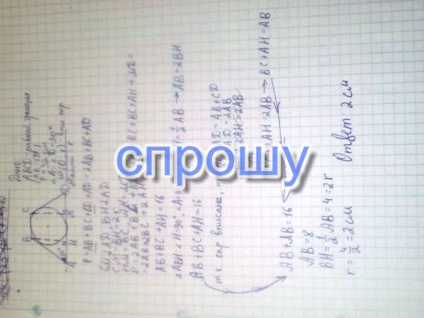 Около окружности описана равнобедренная трапеция периметром 32 см с острым углом 30 градусов. найдите радиус этой трапеции