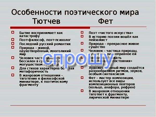 "сходства и различия лирики фета и тютчева" сочинение на эту тему