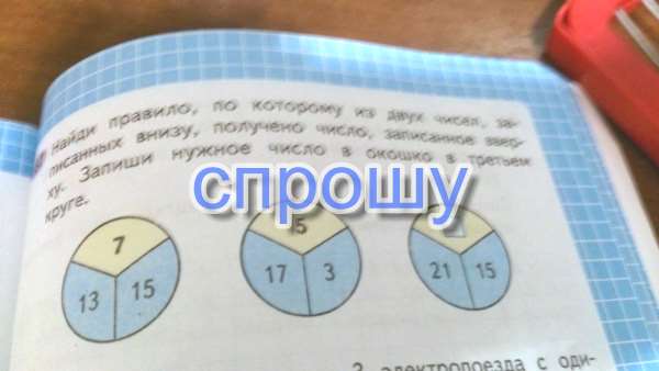 Найди правило по которому из двух чисел записанных внизу получено число записанное вверху. Запиши нужное число в окошко в третьем круге