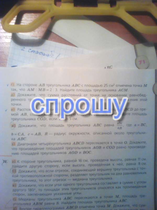 Г)Проведем высоты из т.В (H) и М (h) на АС