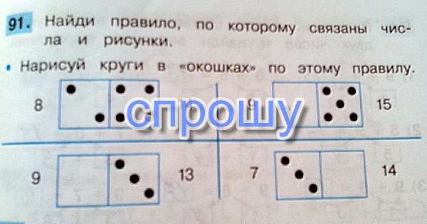 Найди правило, по которому связаны числа и рисунки. Нарисуй круги в окошках по этому правилу.