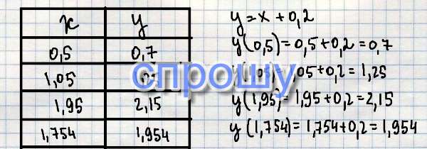 Postroyte tablicu znaceniy y = x+0,12 pri x = 0,5 x = 1,05 x = 1,95 x = 1,754