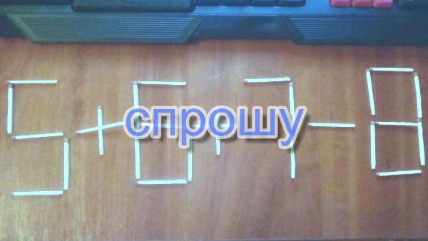 Переставьте одну спичку так чтобы ответ был равен 18 5+6+7-8 18