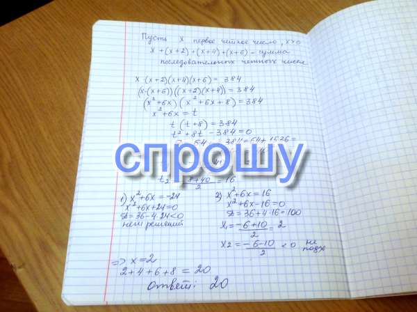 Определите сумму 4 последовательных четных натуральных чисел если их произведение равно 384