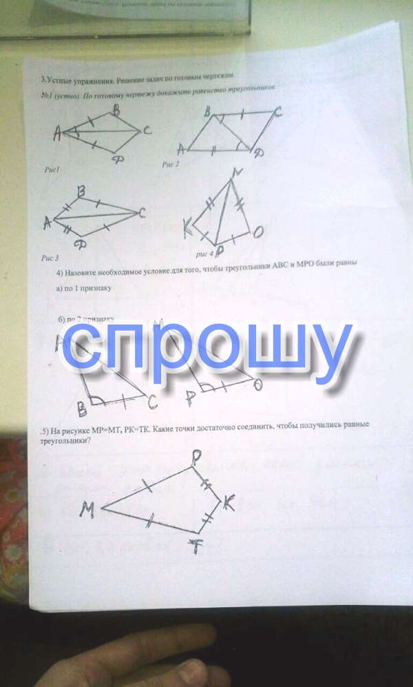 4.1. 1) Чтобы треугольники были равны по I признаку, необходимо, чтобы BC = PO