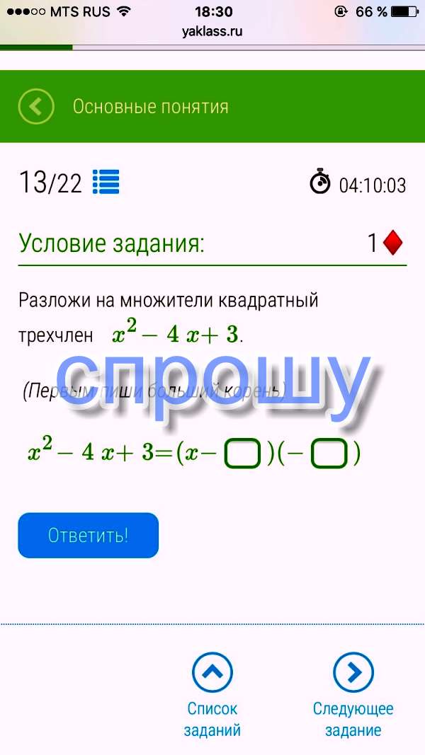 Разложи на множители квадратный трехчлен x2−4x+3.