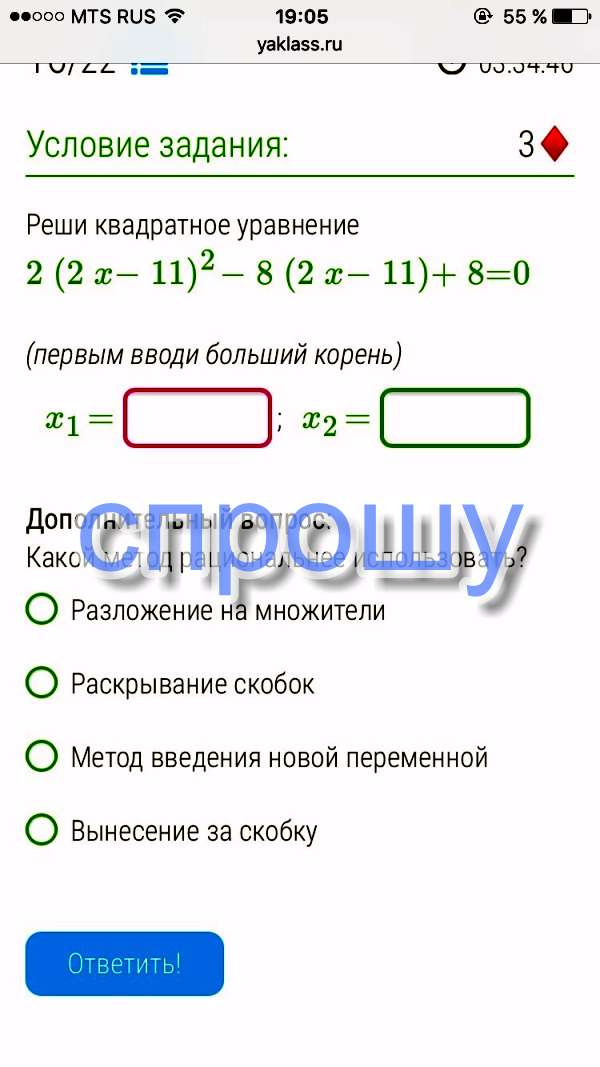 Реши квадратное уравнение