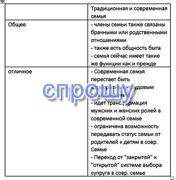 Составьте таблицу «Общие и отличительные черты традиционной и современной семей», на основании критериев, предложенных вами.