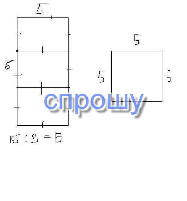 Из прямоугольника длиной 15 см и шириной 5 см вырезали 3 одинаковых квадрата. Начерти один такой квадрат.
