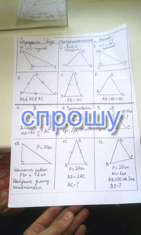 8. Нет, т.к. не выполняется неравенство треугольника: 2 см + 5 см = 7 см, должно быть 2 см + 5 см gt; 7 см, что невозможно;