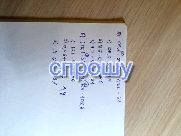 Выполните действия: а) 105,6:24+76*0,35. б) (16,1:35+1,24)*64