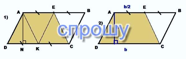 Отрезки AK, KE и EC разбивают параллелограмм на 4 равновеликих треугольника, так как в этих треугольниках равны основания и общая высота параллелограмма. ⇒