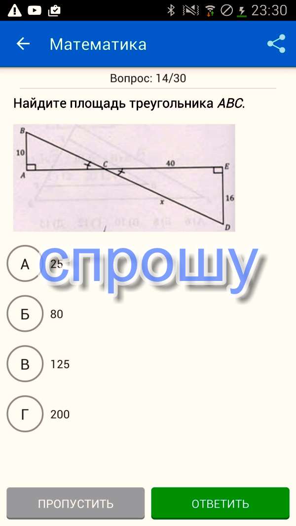 Теперь найдем площадь треугольника АВС(S=1/2a*b)