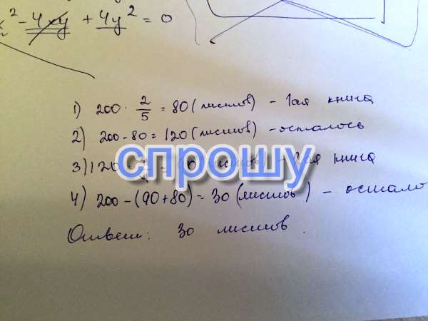 1) 200:5×2=80 листов ушло на перепечатывание первой книги