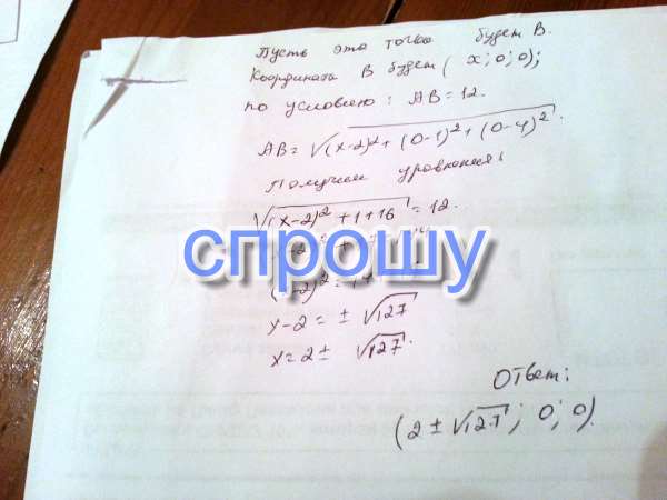 На оси абсцисс найдите точку, расстояние от которой до точки А (2, 1, 4) равно 12
