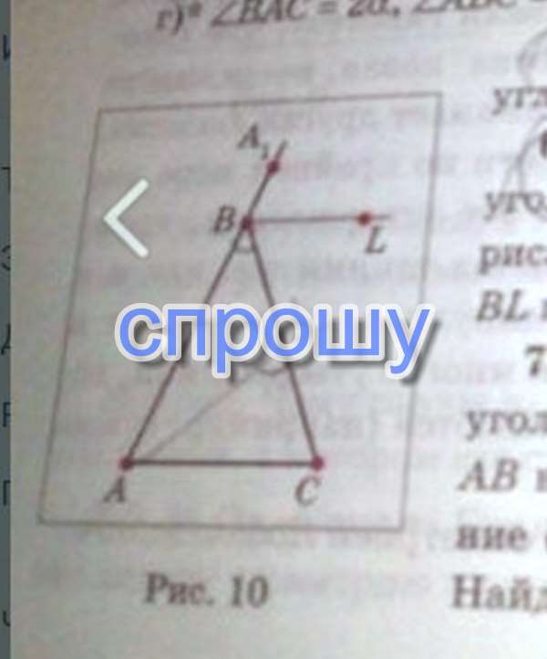 на рис. 10 изображен равнобедренный треугольник АВС с основанием АС, а ВL - биссектриса внешнего угла СВА1 . Докажите,что прямая ВL параллельна АС