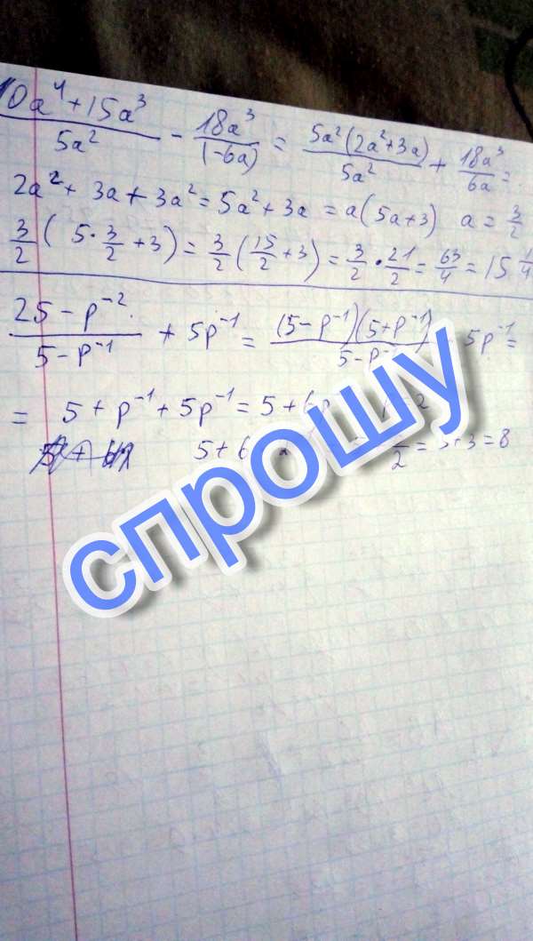 Найдите значение выражения : 25-p^-2/(5-p^-1) + 5p^-1 при p = 2.
