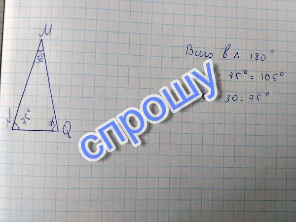 Начертите треугольник MNQ, в котором угол N равен 75°. Измерьте углы M и Q.