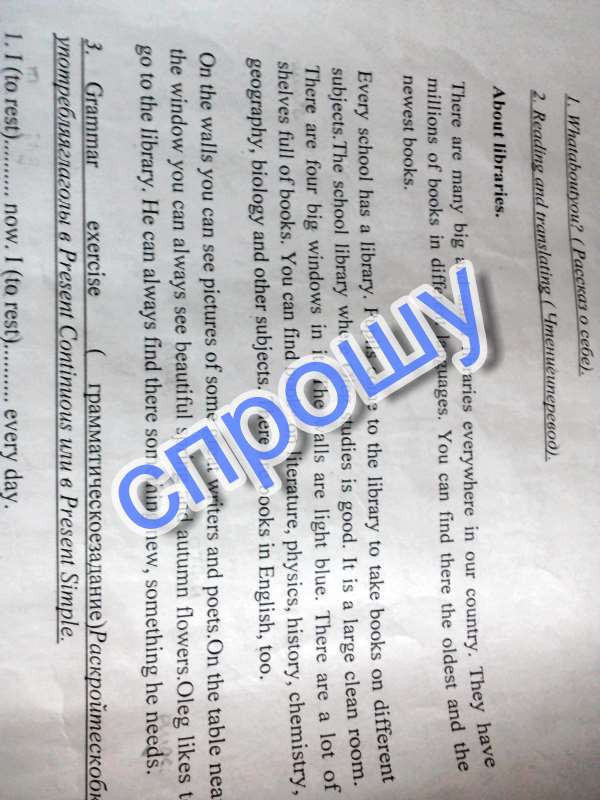 Есть много больших и малых библиотек повсюду в нашей стране. В них миллионы книг на разных языках. Вы можете найти там самые старые и новые книги. В каждой школе есть библиотека. Ученики приходят в библиотеку, чтобы взять книги по различным школьным предметам, где хорошо учится Олег. Она большая и чистая. В ней 4 больших окна. Стены светло-голубые. Есть много полок с книгами. Вы можете найти книги по литературе, физике, истории, химии, географии, биологии и другим предметам. Также есть книги на английском языке. На стенах вы можете увидеть фотографии некоторых великих писателей и поэтов. На столе возле окна вы можете увидеть красивые весенние и осенние цветы. Олег любит ходить в библиотеку. Он всегда может найти там что-то новое, что ему нужно.