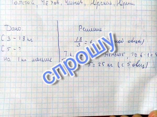 Краткая запись к задаче с трёх серых овец настригли в год 18 кг шерсти и со всех поровну Сколько шерсти можно состричь с 5 черных овец если с каждой овцы получили на один кг меньше