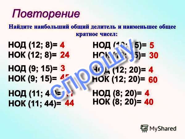 Найдите, пожалуйста, НОК и НОД для 1, 2, 3, 4, 5, 6, 7, 8, 9.