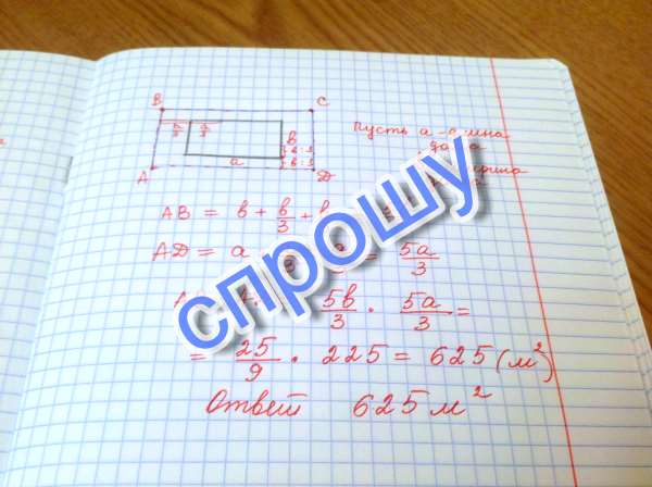 Дом имеющий форму прямоугольника, площадь которого равна 225м2 расположен на участке прямоугольной формы так, что с его стены параллельны участкам ограды И каждый участок ограды удален от ближайшей к нему параллельной стены дома на расстояние, равное одной три длины смежной стены. Определите площадь участка