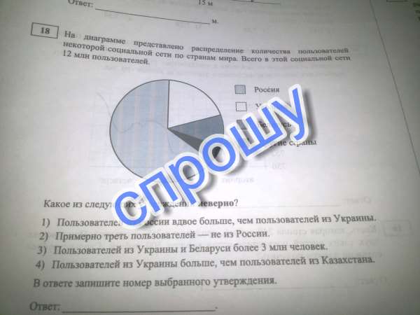 На диаграмме представлено распределение количества пользователей некоторой социальной сети по странам мира. Всего в этой социальной сети 12 млн пользователей.