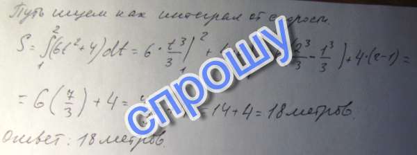 Скорость движения тела задана уравнением v(t) = 6t^2+4 (м/с). Найти путь, пройденный телом за вторую секунду.