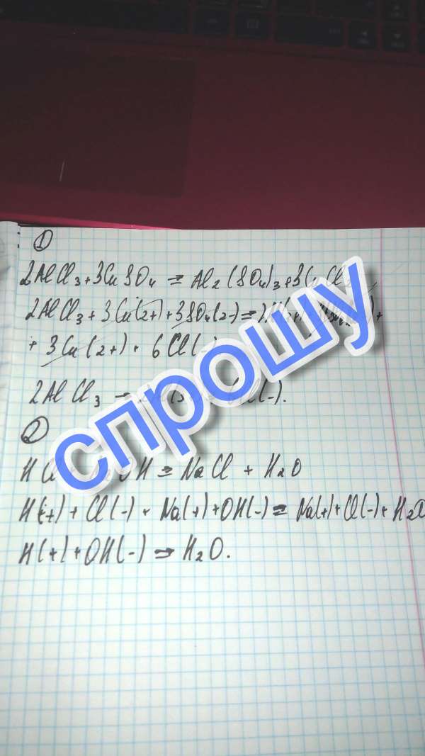 Составить уравнения реакций ионного обмена между заданными веществами и молекулярной и ионной форме:1 хлорид алюминия и сульфат меди, 2 соляная кислота и гидроксид натрия