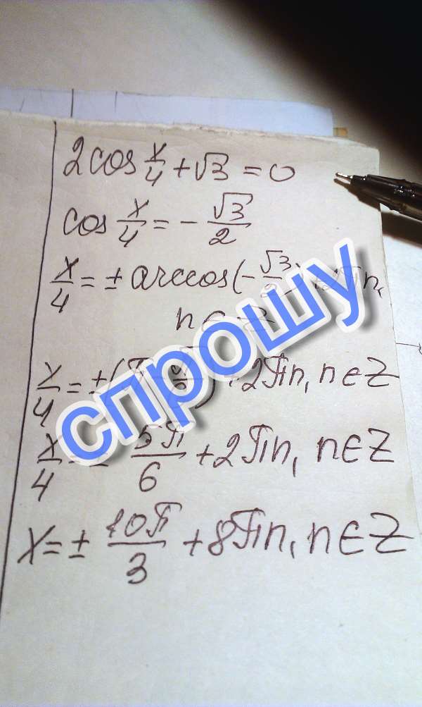 Помогите пожалуйста ...2cos x/4+корень из 3 = 0