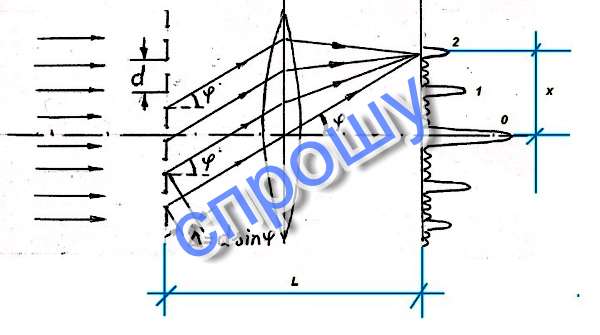 sin φ ≈ tg φ = x / L (поскольку угол φ - мал)