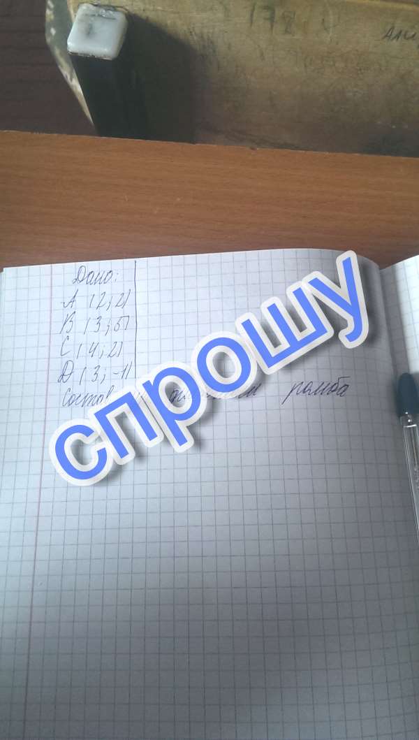 В данном случае с учетом того, что вершины А(2;2) и С(4;2) имеют одинаковые значения у1=у2=2, уравнение прямой (диагонали ромба), проходящей через эти точки имеет вид у=2.