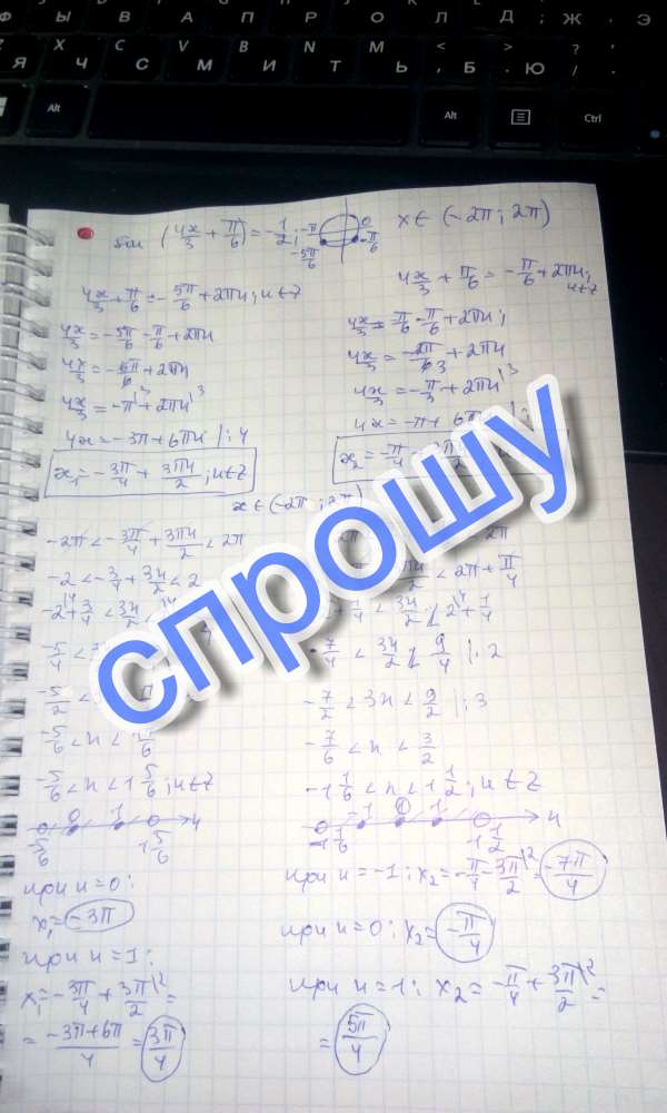 Найти корни уравнения sin(4x/3+Pi/6) = -1/2, принадлежащие промежутку (-2Pi;2Pi).