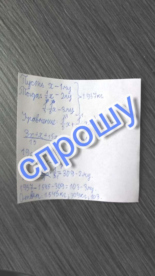 Три предпринимателя закупили для реализации 1957кг яблок.2 нужно в 5 раз м. Яблок,чем 1 пр.,а 3 в 3 раза меньше чем 2. Сколько кг яблок нужно каждому пр. ПОЖАЛУЙСТА ПОМОГИТЕ ДАЮ 45 Б
