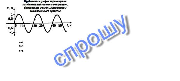 Амплитуда A=1 м, период T=20 с, частота ν=1/T=1/20=0,05 Гц.