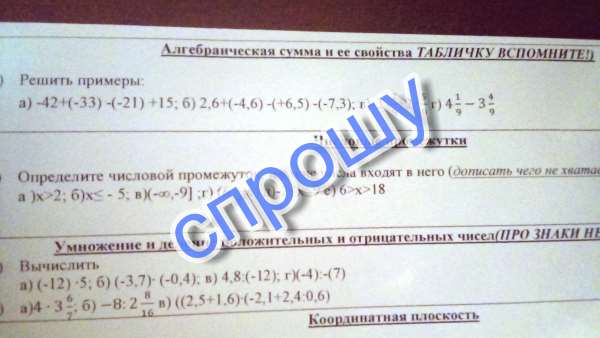 б)2,6+(-4,6)-(+6,5)-(-7,3)=-1,2