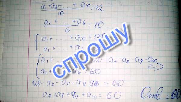 Среднее арифметическое десяти чисел равно 12. Среднее арифметическое первых шести из этих чисел равно 10. Найдите среднее арифметическое оставшихся четырёх чисел.