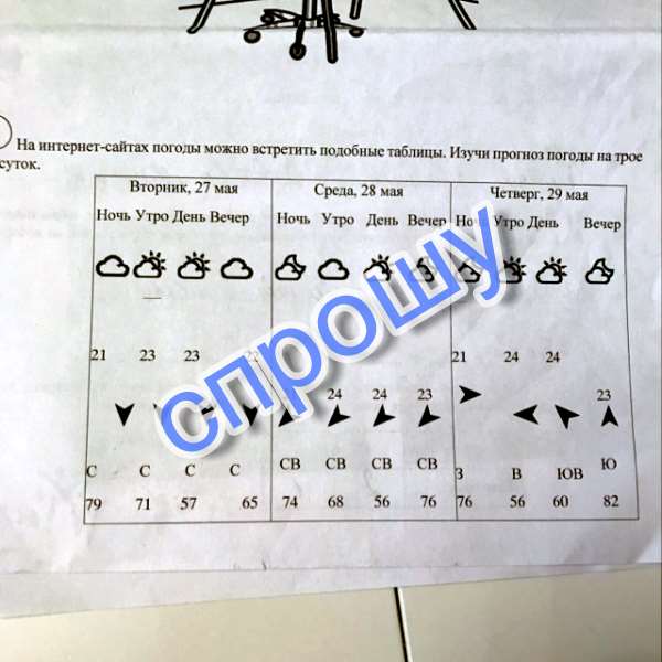 3)Влажность вечером во вторник: 65,утром среды: 68. Значение изменилось,ответ неверный.