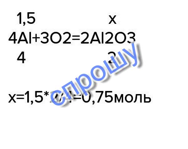 Вычислите химическое количество вещества оксида алюминия образующегося при окислении 1.5 моль алюминия.