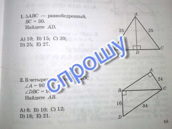АВ=√30∧2-24∧2=√900-576=√324=18