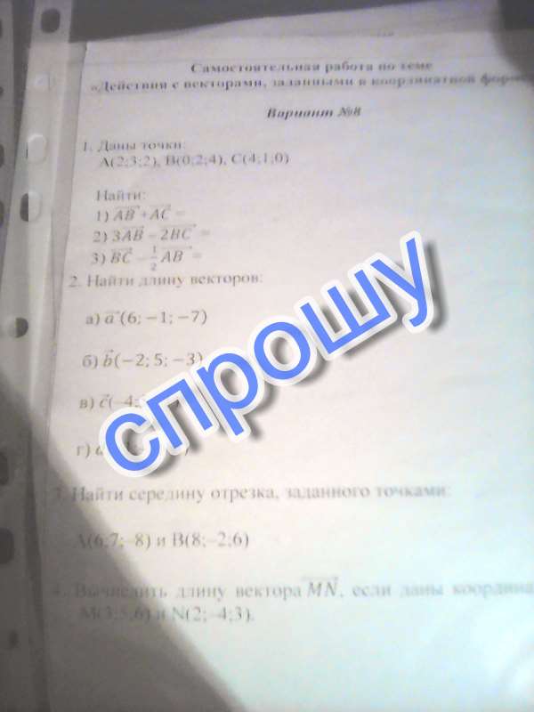 Знач вначале ищешь сами векторы по формуле AB(x2-x1;y2-y1;z2-z1) я пишу ток ответы