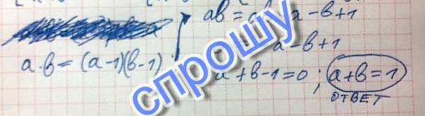 Девятиклассник Саша записал в тетради два числа. Оказалось, что если уменьшить каждое из этих чисел на единицу, то произведение этих чисел не изменится. Найдите сумму записанных Сашей в тетради чисел.