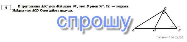 ∠A+∠C+∠D=180гр, и т.к. ∠A=58, ∠D=90, то ∠ACD=180-(90+58)=180-148=32