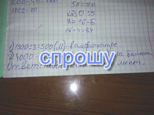 В концертном зале 4000 мест,в партере 1500 мест,в амфитеатре в 3 раза меньше,чем в партере,а остальные на балконе.Сколько мест на балконе?
