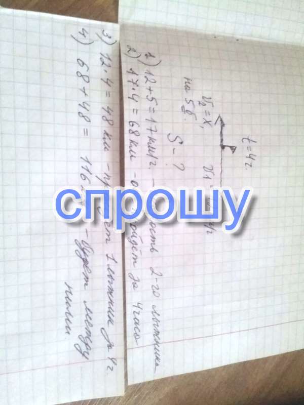 Из города в противоположных направлениях вышли 2 лыжника,U1 = 12км/ч,U2 = ?км/ч на 5 больше,какое расстояние будет между ними через 4 часа?