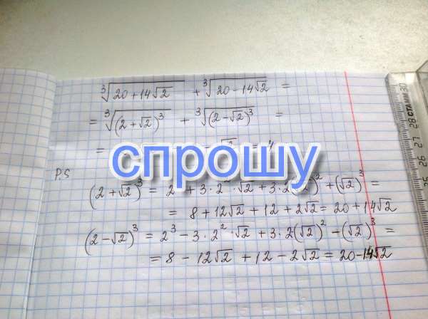 Распишите решение (20+14(2)^1/2)^1/3+(20-14(2)^1/2)^1/3