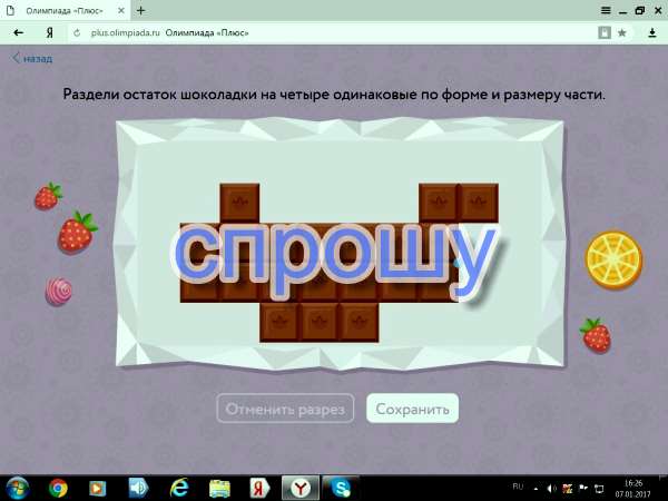 Помогите!!! раздели остаток шоколадки на четыре одинаковые по форме и размерам