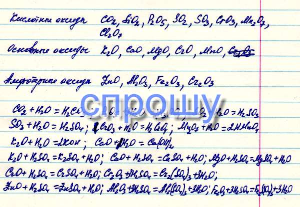 Из ниже перечисленных веществ выбрать отдельно кислотные,основные,амфотерные оксиды. Дать им названия и написать соответсвубщие гидроксидыНаписать возможные хим.реакции выбранных оксидов с H2O, H2SO4, Ca(OH)2.